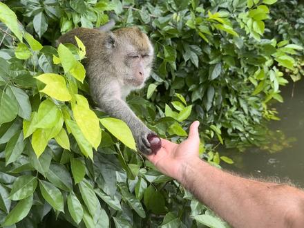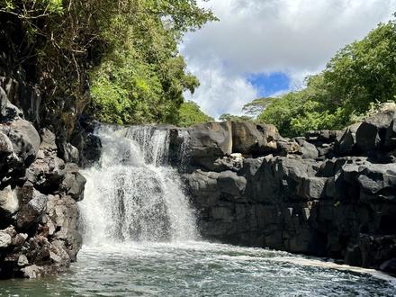 Autre moment fort, la visite des cascades de Grande Rivière Sud-Est, qui est une des plus importantes rivières de l'île Maurice. Située dans la partie Est de l'île, elle se distingue par son parcours sinueux à travers un paysage luxuriant avant de se jeter dans l'océan Indien. La région est célèbre pour ses impressionnantes cascades, particulièrement appréciées des touristes. Ces chutes d'eau, entourées d'une végétation dense et tropicale, offrent un spectacle naturel saisissant, les macaques se laissent approcher et nourrir avec une grande douceur. Ce moment est très convivial, proche de la nature et des animaux en totale liberté. Attention à bien choisir sa rive, car les deux familles de singes n'ont pas du tout le même caractère sur chacune des rives ! Là encore, Emilly saura être au bon endroit au bon moment.