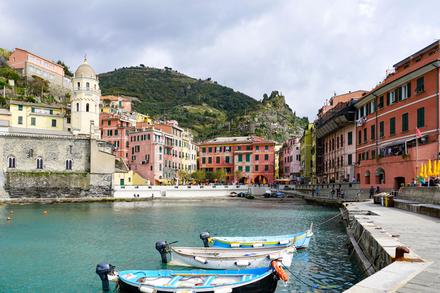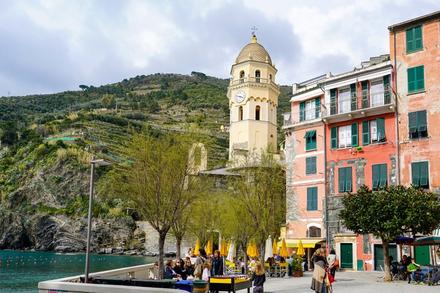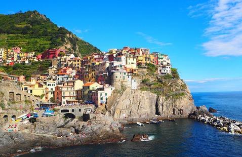 Les Cinque Terre forment une partie de la côte de la Riviera italienne, dans la Ligurie, entre les villes de Gênes et de La Spezia. Les Cinque Terre sont composées de cinq villages : d'ouest en est, Monterosso al Mare qui propose une grande plage de sable fin, Vernazza, un des villages les plus authentiques des 5 terres, Corniglia perché dans les falaises, Manarola point de départ du célèbre “Sentier des Amoureux” qui le relie avec Riomaggiore, ancien village de pêcheurs. Le village de Porto Venere, exemple typique de bourg médiéval fortifié est également situé dans le parc national des Cinque Terre, dans la province de La Spezia.