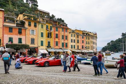 La balade serait incomplète sans une visite de Portofino, petit village aux maisons colorées, au fond d’une crique dont les façades dans les tons de jaune et d’orange se reflètent dans l’eau bleu turquoise de la Méditerranée.