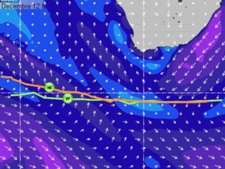 Lundi, les 7 navigateurs sur le devant de la course retrouveront de meilleures conditions de vent avec un vent d’ouest soutenu en marge d’une dépression très creuse évoluant dans les 50°S. Ils devraient donc rapidement franchir la porte des glaces et poursuivre leur route vers l'Est à l’assaut des mers du sud.