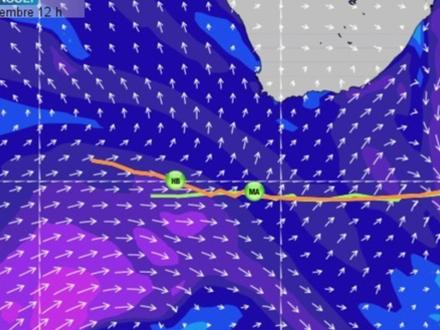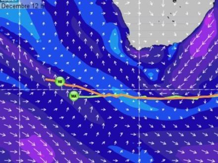 Lundi, le trio de tête sera une nouvelle fois privilégié puisque les vents se renforceront graduellement en s’orientant progressivement au secteur ouest. Cela leur permettra de filer une nouvelle fois à vive allure, mais le vent orienté dans l’axe de la route nécessitera de réaliser quelques empannages pour gagner l’océan Indien en direction de la porte Crozet. A ce petit jeu, il y aura quelques coups à jouer qui pourront redistribuer les cartes.