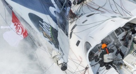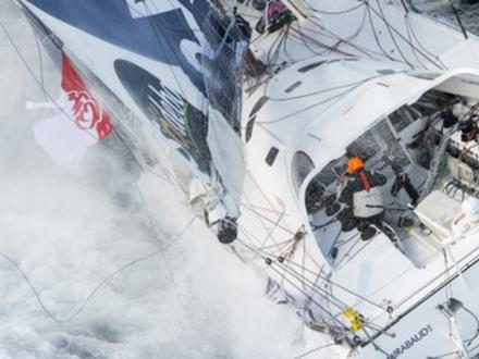 Dominique Wavre (Mirabaud) : « Reaching dans un shaker ! Difficile de trouver le réglage moyen, le vent forcit et mollit à chaque nuage. La mer reste forte, les déferlantes arrivent par le travers, on prend de beaux coups de gite sans forcément accélérer. Le terrain de jeu est très confus aujourd'hui. D'une part la longue houle d'Ouest permet au bateau de surfer, et d'autre part les vagues croisées l'en empêchent en secouant la carène dans tous les sens à chaque accélération. Mirabaud tape beaucoup, il y avantage à bien se tenir ! Derrière cette dépression, un anticyclone nous menace avec le risque de se faire piéger dans la molle. Deux stratégies : faire route directe, ou plonger au sud pour garder un peu plus de vent mais se rallonger la route. Dans tous les cas il faudra un peu de chance pour s'extirper de là. L'eau s'est nettement refroidie. Allez, je repars aux réglages ! ».