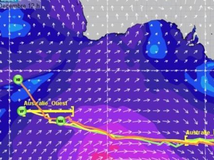 Au cours des prochains jours, Gabart et La Cleach devraient garder, voire conforter leur avance puisqu’ils vont rester sous l’influence des vents portants de sud-ouest entre 20 à 25 nœuds pour se diriger vers la porte Australie Est. Les vents prendront tout de même un peu de droite pour s’orienter ouest dans la journée de dimanche. Ils devront alors faire quelques empannages avant de franchir la seconde porte Australie dans la journée de lundi.