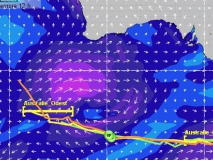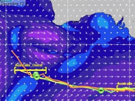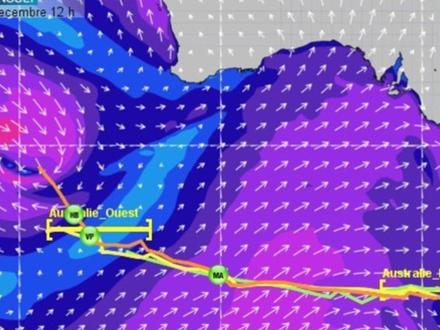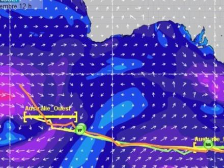 Les écarts se sont creusés entre les 5 navigateurs en tête de la course. Les deux leaders Gabart et La Cléach bénéficient de la meilleure configuration météo sous l’influence d’un flux de sud-ouest d’une vingtaine de nœuds. Après avoir franchi aisément la porte ouest Australie, ils continuer de progresser vers l’est avec des vitesses proches de 20 nœuds, en dépit d’une mer désordonnée. J.P Dick situé plus à l’ouest voit le flux de sud-ouest nettement faiblir, rattrapé progressivement par une dorsale. Il peine donc à rejoindre la porte ouest Australie et risque bien de se faire engluer dans la molle anticyclonique. Quant à Stamm et Thomson qui ont choisi de prendre une route nord pour éviter la dorsale et retrouver de l’air, ils ont nettement rallongé leur route et se trouvent maintenant à 500 milles des 2 leaders.