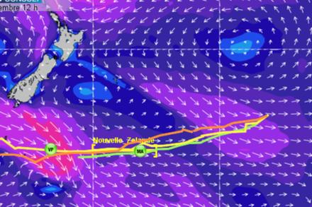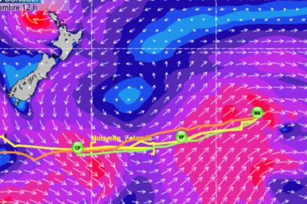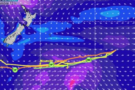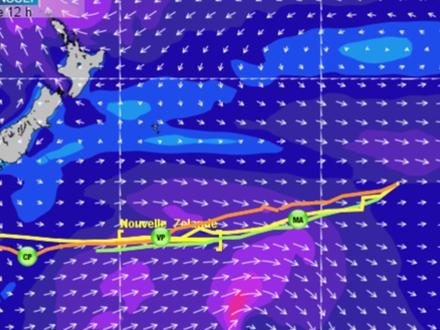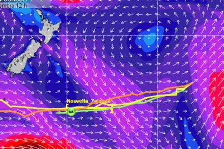 Samedi 22 décembre : Samedi, les conditions météo évolueront peu pour le duo de tête avec le maintien d’un flux d’Ouest modéré au passage de la porte Nouvelle- Zélande. Jean-Pierre Dick bénéficiera quant à lui d’un regain de vent avec un flux de Nord-Ouest fraîchissant, qui devrait permettre de grapiller quelques milles… Stamm et Thomson verront au contraire les vents d’Ouest à Nord-Ouest faiblir dans une zone de transition entre deux perturbations.