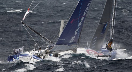 Quatrième, Alex Thomson (Hugo Boss) poussé par 25 noeuds de secteur Ouest, était avec Jean-Pierre Dick et Arnaud Boissières (Akéna Vérandas) le plus rapide de la flotte avec une vitesse de 19,3 noeuds. Derrière, sur une route très nord, Jean Le Cam progressait sans difficulté et surtout sans la pression de ses deux poursuivants relégués à plus de 350 milles. Par contre, le Britannique Mike Golding (Gamesa) et le Suisse Dominique Wavre (Mirabaud) se livrent un beau duel pour l’obtention de la sixième place. 49 milles seulement les séparaient jeudi matin. En queue de peloton, Bertrand de Broc (Votre Nom Autour du Monde avec EDM Projets), Tanguy de Lamotte (Initiatives-Coeur) et Alessandro Di Benedetto (Team Plastique) bénéficiaient de bonnes conditions météo qui leur permettaient de maintenir des vitesses moyennes au-dessus de 16 noeuds.