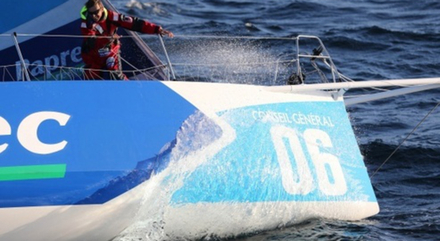 Derrière, Javier Sanso (Acciona 100% EcoPowered) et Arnaud Boissières (Akéna Vérandas) sont conscients que Bernard Stamm (Cheminées Poujoulat) revient fort sur eux. Un skipper suisse soulagé d’avoir retrouvé son autonomie énergétique : « Ça se passe plutôt bien, il y a 200 mètres de visibilité, je suis dans le brouillard mais les conditions sont bonnes. La mer est rangée dans le bon sens et il y a un bon vent. Ça glisse, ça fait du bien. L’hydrogénérateur de bâbord charge à bloc mais celui de tribord, celui qui a merdé, recharge moins bien. Mais à cette vitesse-là c’est suffisant pour charger les batteries ».