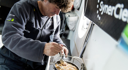 Plus de 1 000 milles derrière le Britannique, Jean Le Cam (SynerCiel), qui a toujours pris soin d’embarquer de riches nourritures lors de ses tours du monde, n’a pas failli à la règle pour ce réveillon de la Saint-Sylvestre. « Le nouvel an, habituellement, je le passe avec mes amis autour d’un bon repas. Là je n’aurai que le bon repas, mais c’est déjà pas mal. A choisir entre un ris de veau et des petites pommes Duchesse, un Parmentier de canard ou un confit de canard. Je suis clairement gâté de ce côté là ! Et j’ai aussi découvert un nouveau paquet de Haribo ! Des crocodiles cette fois-ci ! ». D’autres solitaires ce contenteront d’un repas amélioré à base de lyophilisés, nettement moins appétissant.