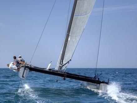 Nous sommes différents des autres bateaux, le notre fait moins de 10 mètres, est facilement démontable et ne nécessite pas de grue pour le mettre à l’eau. Il peut même se transporter sur une simple remorque de route (les AC45 et les Extreme 40 nécessitent des containers et une grue pour le matage et la mise à l’eau). De plus les GC32 ont été construits pour une utilisation aussi bien en mer que sur les lacs. Grâce à ses safrans en « L » et ses dérives en « double S » ce catamaran peu dépasser les 30 nœuds (55 km/h) en se stabilisant au dessus de l’eau.