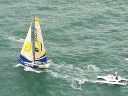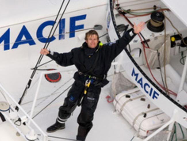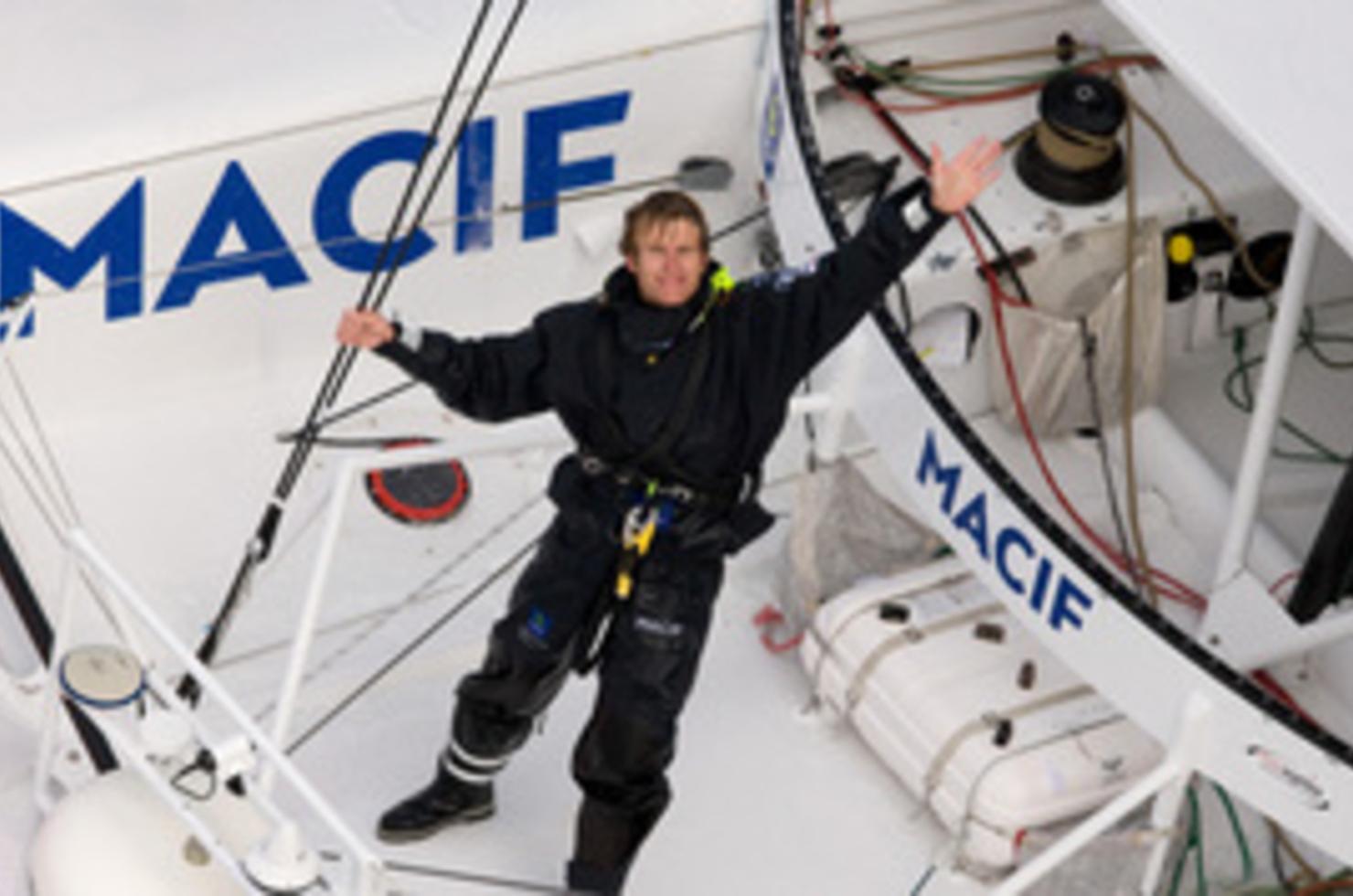 Le jeune skipper du bateau Macif a terminé sa grande boucle sur le même rythme que cette circumnavigation planétaire endiablée. Il a dû réaliser dans la nuit de samedi à dimanche une traversée à grande vitesse - flashé à 18.5 noeuds de moyenne sur 24 heures - et à haut risque du Golfe de Gascogne et de son trafic maritime dense. Puis il a franchi la ligne d'arrivée peu après 15h18, à l’avant d’un front qui rendait les conditions peu maniables devant la cité sablaise. Des conditions météo qui ont empêché que la fête soit totale puisqu’un arrêté préfectoral publié samedi a interdit aux embarcations de spectateurs de sortir du port après 7 heures, pour des raisons de sécurité, en raison du coup de vent annoncé. Michel Desjoyeaux, parti à la rencontre de son protégé tôt dans la matinée, a été le premier à rejoindre Macif en mer.