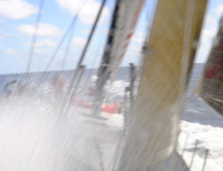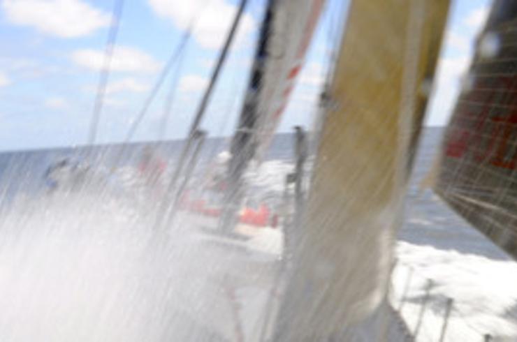 9 équipiers mènent le bolide, sans roof de protection, sans enrouleur pour les voiles plates et avec des harnais et des casques pour les marins car à 25 noeuds, ça décoiffe! Les gros embruns et les vagues qui traversent le pont ont vite fait de vous arracher du bateau, de vous disloquer les cervicales ou tout simplement de vous mettre une belle baffe. Et oui –life is extreme- c'est indique dans le programme de la Volvo.