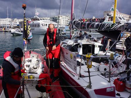 Les 15 skippers ont quitté les pontons sous un ciel changeant. Le top départ sera donné depuis la recouvrance à 13 heures. Avant de prendre le large, les solitaires effectueront un parcours le long de la digue pour saluer le public brestois.