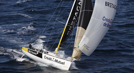Comme prévu, le vent s’est renforcé, hier soir. Mais plus que son intensité, c’est son instabilité qui corse la tâche des navigateurs depuis le milieu de nuit. « C’est assez sportif car très variable. On a entre 30 et 40 nœuds, pas mal de mer et des éclairs dans tous les sens. Par moment, c’est vraiment chaud » déclarait Gildas Morvan (Cercle Vert), ce matin lors de la vacation. « De gros grains nous passent dessus. Ils sont très actifs, très violents. Il faut faire attention de ne pas se faire surprendre pour éviter les sorties de piste. La concentration est de mise à la barre. Il faut affaler et renvoyer régulièrement la voile d’avant pour ne pas casser » précisait, un peu plus tôt, Damien Guillou. S’il est sur le qui-vive, le skipper de La Solidarité Mutualiste, ne cache cependant pas sa satisfaction de faire route plein sud au portant, ce samedi. « Ca avance vite. A l’ouest, nous bénéficions d’un angle de descente intéressant » ajoutait le leader au pointage de 9 heures. C’est en effet sous spi qu’il engrange les milles depuis pratiquement une douzaine d’heures maintenant, alors que ses camarades de jeu les plus à l’est sont encore sous solent. Résultat, quand il affiche des vitesses comprises entre 11 et 13 nœuds, Gildas Morvan ou Fabien Delahaye (Skipper Macif 2012) sont flashés entre 7 et 10 nœuds.