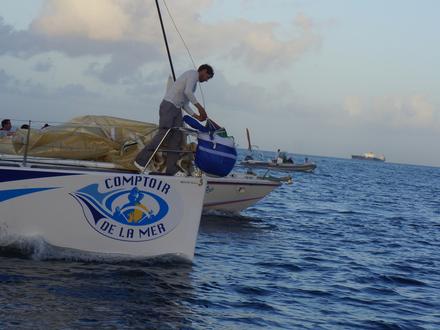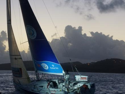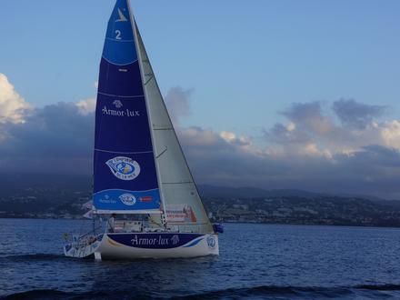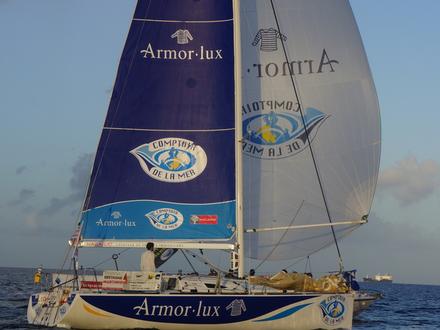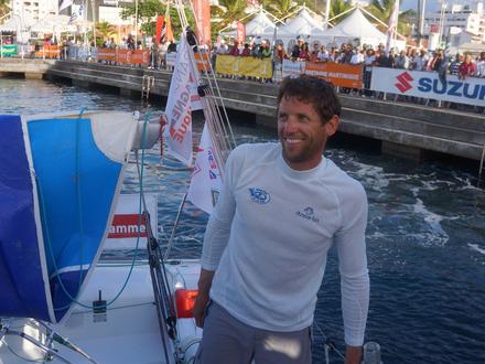 Les projecteurs des bateaux accompagnateurs l’ont retrouvé en toute fin de nuit, amaigri et fatigué, après une dernière nuit difficile, mais aussi très serein. Jusqu’au passage de la ligne, il a manœuvré calmement, gérant avec le sourire les diverses sollicitations des bateaux accompagnateurs. « Je suis vraiment content de décrocher enfin la première place, a-t-il lancé en arrivant au ponton. C'est la victoire qui me manquait après mes places de deuxième et troisième lors des deux dernières éditions. Je suis vraiment ravi parce que ça fait longtemps que je me bats pour monter sur la plus haute marche du podium. D’y arriver, c’est magique. » Une noix de coco dans la main et un chapeau de paille sur la tête, il a précisé: « Et cela me fait particulièrement content d’être devant un concurrent redoutable comme Gildas Morvan ! » 4 petites minutes séparaient les deux marins lors de l’édition 2009, remportée par le skipper de Cercle Vert. Celui-ci est attendu à 9H30 (15H30, heure de Paris), une demi-heure devant Fabien Delahaye (Macif).