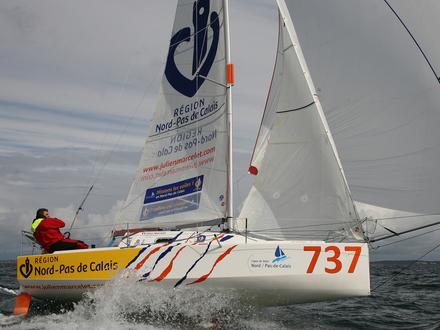 « La mini-transat est assez difficile à préparer tant qu’on ne l’a pas vécue, concède le marin. Celui qui dit qu’il sait ce qui va se passer est vraiment fort ! » Alors l’ingénieur mécanique discute avec ceux qui sont passés par là et qu’il côtoie tous les jours. « J’ai compris les astuces de réglages du mât ou du pilote en voyant faire les navigateurs ici, au travail. Auprès de Michel Desjoyeaux, j’ai appris que lorsqu’on fait une erreur, on ne s’affole pas et on s’arrange pour revenir doucement. On a commis une erreur d’accord, on s’en souvient pour la prochaine fois, mais surtout on continue à avancer. » Au fil des courses, Julien Marcelet apprend à prendre soin de lui et du bateau. « Pour la première fois cette année, j’ai réussi à arriver sur la ligne sans eau dans mon bateau, remarque-t-il ainsi. J’améliore aussi le rangement à bord, je pense à ces petites choses qui font qu’on se fatigue moins. » Il explique également aller beaucoup plus vite dans la préparation de son carnet de route, maintenant qu’il sait de quelles informations il a besoin. « L’an dernier, je prenais beaucoup trop de données », précise-t-il. Le skipper de « Hissons les voiles en Nord-Pas-de-Calais a terminé 12e de sa première course de la saison et première étape du championnat de France, la Pornichet Select 6.50.