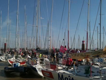 12H30: Les skippers s'attellent aux derniers préparatifs, confient leurs portables et saluent leurs proches. Pierre Bojic, organisateur Pen Duick, se réjouit d'avoir tenu à donner une nouvelle dimension à la Solitaire. "Bordeaux cherchait un événement sportif à sa hauteur, explique-t-il. Nous avions la dimension nécessaire mais aussi la possibilité de nous adapter aux contraintes du fleuve avec des supports qui, notamment, ont bien supporté les forts courants de la Garonne."