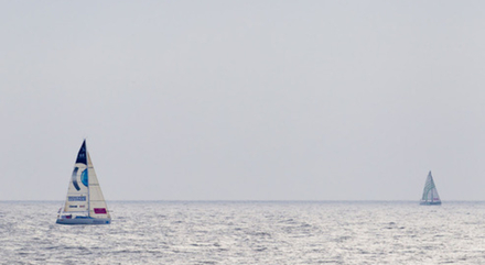 A la lecture du classement de 5 heures depuis le bateau Direction de Course, juste avant le « Tout Va Bien », Gildas Morvan (Cercle Vert) a découvert que sa superbe de la veille avait été quelque peu ébranlée. Certes, il pointait toujours en tête mais les écarts avec la concurrence et par rapport au but étaient dérisoires. Il fallait donc regarder à l’AIS le positionnement de tous. Sans surprise, celle-ci ce présentait sur trois paliers. Du Nord au Sud, une vingtaine de milles séparait les extrémistes. Chacun ayant opté pour un camp afin de s’émanciper. Au Sud, Gildas Morvan était toujours accompagné aux basques par Jean-Pierre Nicol (Bernard Controls). Dans la vision médiane de la situation, Yann Éliès (Groupe Queguiner-Leucémie Espoir), Thierry Chabagny (Gedimat), Yoann Richomme (DLBC) ou Jérémie Beyou (Maître CoQ) bandaient toujours leurs arcs vers leur cible. Au Nord, l’école buissonnière était emmenée par le « Professeur » Michel Desjoyeaux (TBS) avec à ses côtés les élèves Alexis Loison (Groupe FIVA) et Paul Meilhat (Skipper Macif 2011).
