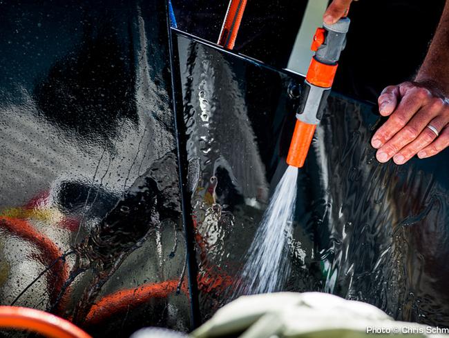 C’est à Lisbonne, 2e escale de la première édition de la Route des Princes que nous avons rencontré Philippe Echassoux, préparateur du team Spindrift Racing, qui nous a expliqué le rôle de l’équipe technique à terre. « Nous sommes trois dans l’équipe technique du MOD70 Spindrift : Florent Le Gal, technicien composite depuis plus de 12 ans et spécialiste des multicoques qui s’occupe également de la peinture, Tim Carrie, qui gère la logistique et l’informatique et moi-même. Je m’occupe de tout ce qui est accastillage, hydraulique, des gréements, des winchs....Margaux Meheo s’occupe quant à elle de la logistique vêtements techniques et assiste Virginie Bouchet au niveau de la communication du projet ». Une équipe technique au rôle crucial qui peut faire la différence en mer. « Nous devons faire en sorte que le bateau soit toujours en bon état de marche et de répondre au mieux aux demandes des navigants. Si une pièce vient à défaillir, ça handicape le team. Dès que le bateau rentre au ponton, on vérifie tout, du haut du mât jusque sous les coques, de l’informatique à l’hydraulique en passant par l’informatique, explique Philippe Echassoux. On discute également avec l’équipage pour s’assurer qu’il n’y a pas eu de problème à bord. Ca fait un an qu’on cherche à améliorer le bateau. On change les choses usées, on s’adapte en fonction des updates. On peut adapter certains aspects en termes de confort mais pas de performance vu que ce sont des bateaux monotypes ». Autre obligation du team sur un tour de l’Europe tel que la Route des Princes : « arriver à l’heure et en bon état. On fait le tour par la route avec un camion qui tracte le semi-rigide qui nous sert à manœuvrer le bateau dans le port, et un autre véhicule de neuf places pour l’équipage à terre sur chaque étape. Parfois, si le skipper en fait la demande, on essaie de longer les côtes au maximum afin d’être prêt à intervenir rapidement en cas de besoin », poursuit-il. Nouveauté cette année : un container servant à transporter les voiles qui pèsent entre 70 et 80 kg chacune. « On a une grand voile de remplacement déjà lattée, ce qui nous permet de gagner du temps si on besoin de la changer ».