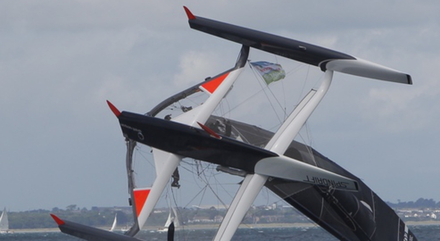 Le MOD70 Spindrift a chaviré quelques secondes après le départ de la première manche des régates in-shore du jour samedi après-midi à Dun Laoghaire, en Irlande. Tout l’équipage est sain et sauf mais Jacques Guichard a été blessé lors du chavirage.