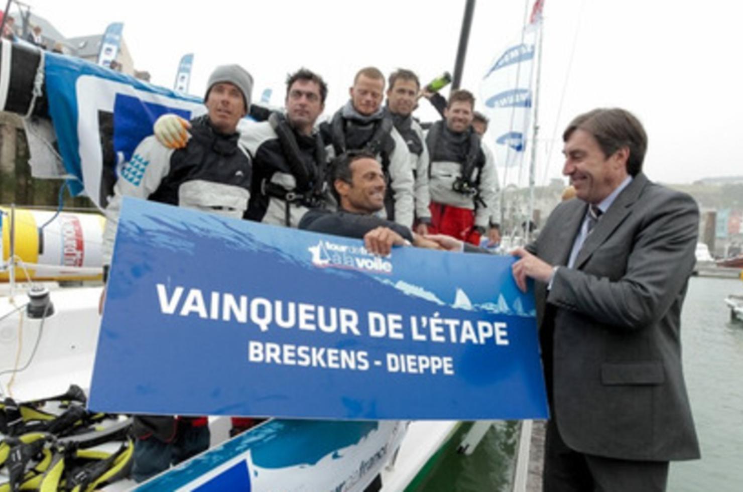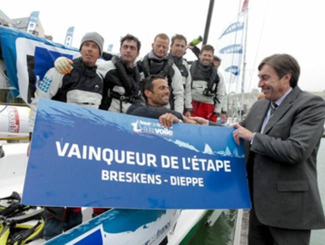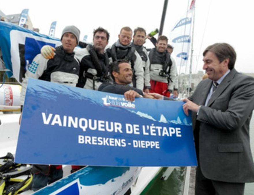 Il est 12h37 quand Groupama 34 s'adjuge sa deuxième victoire consécutive sur les parcours de ralliement de ce Tour de France à la voile. Deux sur deux dans l'escarcelle du vainqueur de la Volvo Ocean Race et surtout "puissance 4" grâce au coefficient de cette étape de 142 milles entre Breskens en Hollande et Deauville. Franck Cammas, impérial sur ce début de compétition, possède 11 places de premier sur 14 possibles, terminant les trois seules manches qu'il ne gagne pas à la 2ieme place...