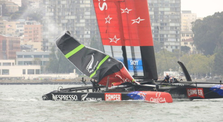Menant la danse avec la facilité qu'on leur prête, les Kiwis se tire alors une balle dans pied... Jamais inquiétés par quelque problème technique que ce soit, Dean Barker et ses 10 hommes essuient pourtant un revers qui aurait pu leur coûter cher. La drisse maintenant leur voile d'avant en l'air lâche subitement, rendant instantanément impossible tout bon écoulement du vent et par conséquent toute vitesse convenable et adéquate à la compétition.