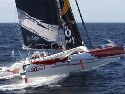 Après un mois en équipage sur le Tour de France à la voile, Thomas Coville se prépare pour son tour du monde en solitaire à bord du maxi trimaran Sodebo, sur lequel il tentera de battre le record détenu par Francis Joyon.