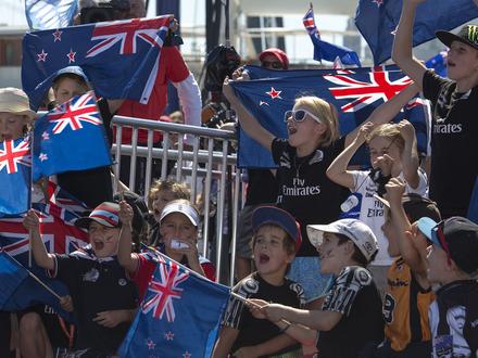 Si sur l'eau la balance penche de peu du côté Néo-Zélandais, à terre le poids des Kiwis n'a pas d'égal. La déferlante de All Black déambulant les rues de San Francisco submerge largement les quelques supporters américains soutenants leur defender. Dans les boutiques dédiées à l'événement impossible de se procurer le moindre vêtement à l'effigie du pays à la fougère. "Sold out" vous répondent les vendeurs complètement dépassés par la demande des touristes ayant choisi de s'habiller en Men in Black. Dans les tribunes de Marina Green, plus de drapeaux kiwis proposés aux spectateurs, seuls ceux de la bannière étoilée rouge et bleu restent disponibles au grand dam d'une Américaine venue encourager les Kiwis. "Avez-vous un drapeau néo-zélandais ?", demandait-elle, "non, désolée, nous sommes en rupture de stock depuis jeudi", répondait une volontaire venue de Grèce pour vivre l'événement.
