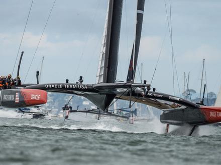 Les catamarans volants seront en représentation ce samedi pour au moins une manche voire deux si les Américains remportent la première, à 13h15 et 14h15 (22h15 et 23h15 heure française).