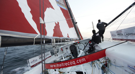 Pendant ce temps là, les Imoca filent au large de Guernesey, Macif en tête grâce à son option dans le nord de l’île. Mais le duo Gabart-Desjoyeaux est marqué de près par Jérémie Beyou et Christopher Pratt sur Maître Coq. « La nuit n’a pas été facile, commente Jérémie Beyou, tenant du titre. Nous avions de l’avance et nous sommes tombés dans un trou d’air ! Les trois bateaux suiveurs sont revenus puis avec la renverse de courant, ça a redémarré. » Après midi, les premiers Imoca passeront la pointe bretonne avec 25-30 nœuds. « Il va falloir remettre le bateau en configuration brise car là cela commence déjà à planter des pieux : c’est un avant-goût ! », commente le marin. « Il ne faudra pas faire de bêtise et passer le golfe de Gascogne sans trop de dégâts. » A l’heure où les Class40 s’abriteront au port, les Imoca s’extirperont de la Manche.