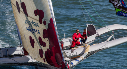 Pour l’heure, chez les Imoca, Macif (François Gabart – Michel Desjoyeaux) semble être absolument dans le bon timing et gère les zones de transition avec une facilité déconcertante. Ce dimanche matin, il progresse au portant dans un flux de secteur nord-ouest d’une douzaine de nœuds à une petite centaine de milles au nord de Lisbonne et devance de près de 50 milles le groupe formé par PRB (Vincent Riou – Jean Le Cam), Safran (Marc Guillemot – Pascal Bidégorry), Maître Coq (Jérémie Beyou – Christopher Pratt) et Cheminées Poujoulat (Bernard Stamm – Philippe Legros), qui, pour une raison encore inexpliquée, a perdu 18 milles ces douze dernières heures. Chez les Multi-50, la bonne opération de ces dernières heures est à mettre au crédit d’Arkema (Lalou Roucayrol – Mayeul Riffet), qui, grâce à son léger décalage dans l’ouest, s’est emparé du commandement au premier pointage ce dimanche et précède d’une poignée de milles Actual (Yves Le Blévec – Kito de Pavant) et FenêtréA-Cardinal (Erwan Le Roux – Yann Eliès). Enfin, du côté des MOD70, qui se trouvent à 280 milles par le travers du cap Saint-Vincent, le point le plus sud-ouest de l’Europe, Edmond de Rothschild (Sébastien Josse – Charles Caudrelier) et Oman Air-Musandam (Sidney Gavignet – Damian Foxall) bénéficient pour leur part d’un régime de nord-est bien établi. Et ça, c’est la bonne nouvelle du jour car c’est la preuve que les alizés sont bien présents de la pointe espagnole à l’archipel du Cap-Vert.