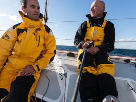 Dès le départ de la porte Océane, SNCF Geodis pointait en tête à la première marque obligatoire et y restait un bon moment avant de se faire reprendre par la vélocité des Mach 40, voiliers neufs, d’ailleurs grands vainqueurs de la compétition. Reprendre le rythme de la navigation au large après le nouveau départ de Roscoff aura été difficile psychologiquement pour Fabrice et Armel. Le duo restait tout de même dans le top 5 lors de la traversée du golfe de Gascogne, malgré une mer formée et un vent fort. Sachant faire le dos rond et préserver leur matériel en bons pères de famille, les pilotes du Class 40, dessiné par Marc Lombard, s’en tiraient avec efficacité avant d’affronter les calmes du cap Finisterre.