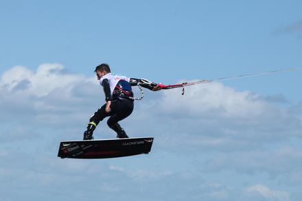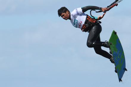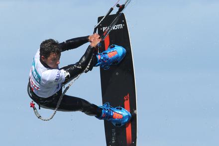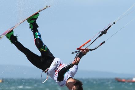 31 hommes et 9 femmes sont entrés en piste ce dimanche avec une tramontane déchaînée. Pour ce premier jour, les riders disposaient de sept minutes pour exécuter un maximum de douze figures. Et le spectacle fut à la hauteur d'une très belle étape de coupe du monde. Le triple champion de la discipline, Youri Zoon, a même dû se plier à l'épreuve des qualifications, conséquence de la blessure qui l'avait fait plonger au classement à la fin de la saison 2013. Il trouve en face de lui un tricolore très motivé, Valentin Garat. Le Montpelliérain ne se laisse pas impressionner et attaque très fort dès le début du heat. Avec cette stratégie, le triple champion du monde est obligé de tout donner pour passer au tour suivant mais il est contraint à l’abandon suite à une grosse chute. Cela fait les bonnes affaires du Français qui passe les qualifications. Il sortira finalement au tour suivant face au vice-champion du monde Mac Jacobs. Même pour les champions aux CV impressionnants, la journée ne fut pas facile avec des conditions extrêmes de plus de 40 noeuds. Avec un vent aussi fort, les compétiteurs doivent rester lucides pour déclencher leur figure au bon moment et assurer une bonne réception. L'autre espoir français, Paul Serin, champion de France 2013, a dû affronter Felix Antonio Martinez, au style très aérien. Son adversaire lui a laissé peu d'espoir tant ses figures étaient puissantes et amples. Felix Antonio Martinez a conclu son heat par un looping d'aile gigantesque qui l'a propulsé à 15 mètres de haut et sur plus de 40 mètres de long.