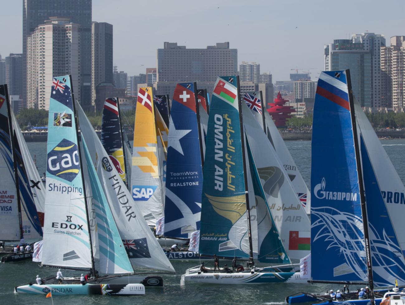 Le catamaran suisse Alinghi, barré par l'Américain Morgan Larson, a remporté dimanche les Extreme Sailing Series (ESS) de Qingdao (Chine), devant un autre bateau helvétique, Realteam, et malgré une collision spectaculaire avec l'un de ses adversaires.