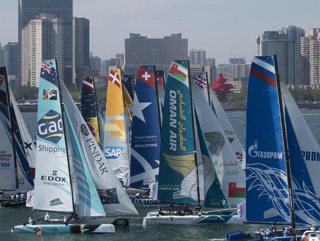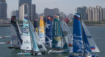 Fidèle à sa réputation, le plan d'eau olympique de Qingdao a réservé bien des surprises aux douze équipages, avec des rafales de 25 noeuds qui ont contraint les organisateurs à faire courir la flotte en deux groupes de six bateaux pour des raisons de sécurité. Cela n'a pas empêché Red Bull Sailing Team de venir s'encastrer de plein fouet dans Alinghi avant le départ de l'une des manches. Pas de blessés mais de gros travaux en perspective sur les deux bateaux.