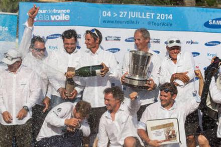 Vainqueur de la dernière course de ralliement entre Hyères et Nice, Courrier Dunkerque 3 remporte l’édition 2014 du Tour de France à la Voile après s’être imposé sur la course en 2008 et en 2009. Groupama 34 et Team Oman Sail complètent le podium.