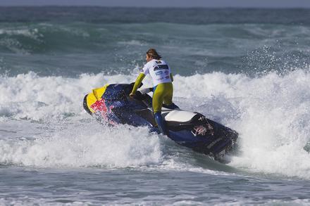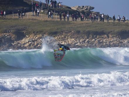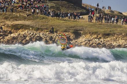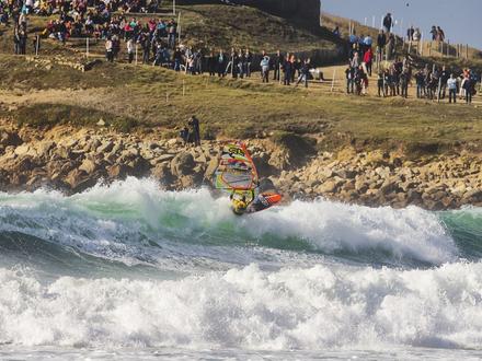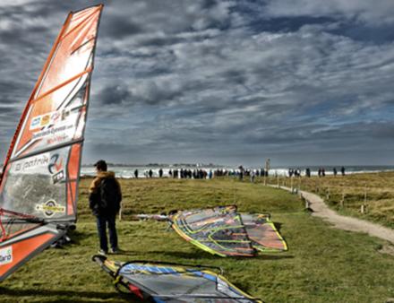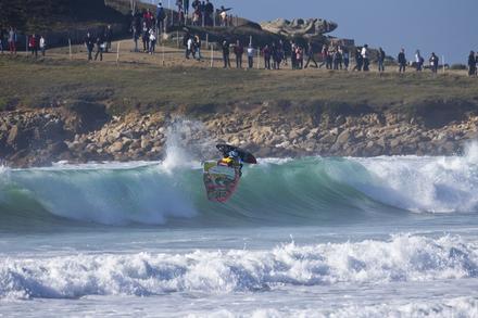 Le vent capricieux n'a pas permis aux organisateurs de lancer la première manche de l'étape tant attendue de la coupe du monde de windsurf mais les spectateurs ont tout de même profité d'un spectacle de beau niveau. En effet, si certains concurrents ont profité de la journée pour se reposer, deux riders, Antoine Martin et Jules Denel, se sont lancés dans une démonstration de tow-in. Le concept ? Réaliser des sauts et des figures en étant tracté par un jet-ski permettant de donner de la vitesse au rider. Antoine Albeau, 21 fois champion du monde de planche, a joué le rôle de pilote pour l’occasion, l’exercice demandant une certaine maîtrise.