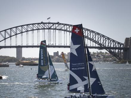 On ne pouvait pas rêver meilleures conditions dans la baie de Sydney. Les 15 nœuds de vent et le magnifique soleil australien ont offert aux milliers de spectateurs une des plus belles régates de l’année ce dimanche, malgré le chavirage de l’équipe locale de GAC Pindar dans la sixième manche, suite à l’avarie sur leurs safrans provoquée par une collision contre Realteam.
