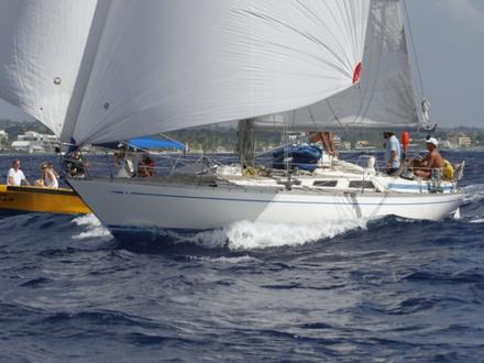 Desiderata, arrivé fin octobre aux Canaries, a rejoint ses camarades, mais néanmoins adversaires, au cœur de la marina. Ce plan Alden, construit en 1975 sur les mêmes plans que Malabar XIII (1945), le bateau personnel de l’architecte américain, affichent un nombre impressionnant de milles avec des périples l’ayant conduit en Australie, à l’île Maurice, où son actuel propriétaire Stuart Armstrong – 13 transatlantiques à son actif - est tombé sous son charme, avant de rejoindre l’Afrique du Sud, le Brésil et de réaliser quelques allers et retours entre les Caraïbes et l’Europe. On le voit, le grand large ne lui fait pas peur et, si ses intérieurs conçus à l’origine pour la course ont perdu leur côté spartiate pour plus de confort, Desiderata se montre toujours véloce.