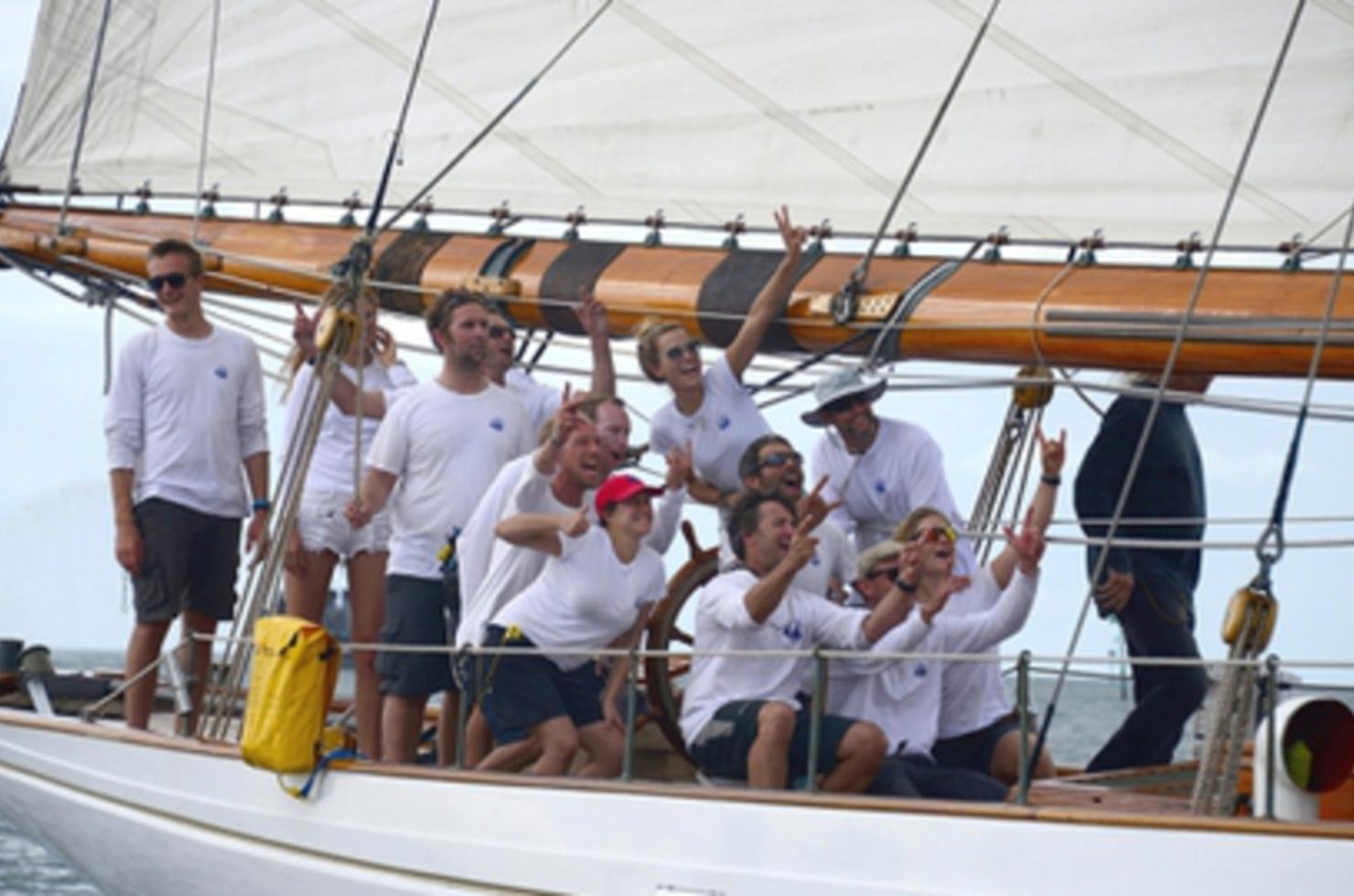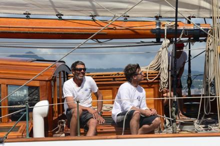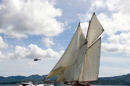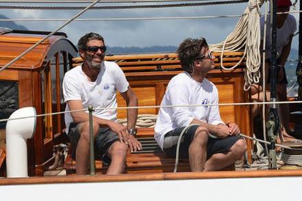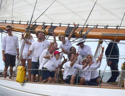 Ce mardi à 13 heures 23 minutes et 53 secondes (heure martiniquaise), Altair, majestueuse goélette de 1931, a franchi en vainqueur (en temps réel) la ligne d’arrivée de la Panerai Transat Classique 2015, dans la baie de Fort-de-France. Pour être à la hauteur de cet événement, la météo a offert un magnifique spectacle, alternant ciel gris, passage de grains et, pour le final dans l’une des plus belles baies du monde, un chaud soleil. Depuis le rocher du Diamant, au Sud de l’île, l’équipage d’Altair a offert un show d’exception pour faire éclater son talent de manœuvrier : empannages, envoi du flèche, envoi du gollywobbler, affalages en série et plusieurs virements de bord pour rejoindre la ligne. Après un dernier virement bord, Altair s’adjugeait donc la première place en temps réel de la Panerai Transat Classique 2015, en 13 jours 3 heures 12 minutes et 53 secondes, à environ 8,8 nœuds de moyenne. La joie de l’équipage emmené par son capitaine Stephane Benfield était irradiante, et Joe Pytka et ses deux filles Sasha et Ariel partageaient cette allégresse.