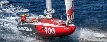 Mais la collaboration ne s’arrête pas là ! L’objectif commun de l’architecte, Romaric Neyhousser, du skipper et des équipes d’Arkema, était d’intégrer le plus de technologies du Groupe dès la conception du prototype. Les hublots de cockpit et la casquette sont réalisés en « verre acrylique » Altuglas® ShieldUp, un matériau aussi transparent que du verre mais plus léger, et surtout, résistant aux conditions les plus extrêmes. Les adhésifs structuraux de Bostik ont également permis l'assemblage des différents éléments constitutifs. Le bateau est intégralement collé avec des produits d’Arkema.