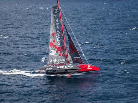 Depuis la mise à l’eau d’Arkema, les innovations et optimisations ont été nombreuses. La nouveauté récente la plus visible a sans nul doute été l’ajout de foils, en lieu et place des dérives classiques, rendu possible par la nouvelle jauge de la classe Multi50. Il s’agit de foils courbes monotypes, aussi appelés foils en « C », efficaces et simples de mise en œuvre. Ces appendices porteurs très à la mode et redoutablement efficaces offrent un gain de performance significatif : naviguant de manière plus aérienne, avec moins de surface mouillée, un bateau équipé de foils améliore la vitesse de manière significative et affole les compteurs. Ainsi, Lalou Roucayrol assure que les foils lui permettent de gagner 4 à 10 nœuds de vitesse en fonction de la force du vent et de l’état de la mer ! Les foils induisent également un nouveau comportement du Multi50 Arkema, qui plus nerveux et réactif qu’avant, est encore plus exigeant aussi bien physiquement que mentalement. Il faut sans cesse rester aux aguets pour le maîtriser. Durant la Transat Jacques Vabre, Lalou Roucayrol et Alex Pella auront fort à faire pour dompter leur machine « semi-volante », en double et en mode course.