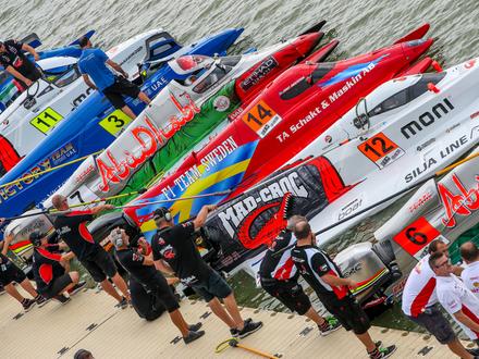 Les bateaux engagés sont des catamarans inshore d’une longueur de six mètres, construits à partir de matériaux composites, affichant un poids d’environ 390 kilos. Sur le tableau arrière, on retrouve pour la plupart d’entre eux, un puissant moteur hors-bord Mercury deux temps 2,5 litres développant près de 400 chevaux au régime maximum de 10 500 tours par minute. Au chapitre de la sécurité, les catamarans embarquent, depuis plusieurs années, des systèmes d’airbags, un cockpit renforcé et des pointes qui se déforment en cas de collision. Pour s’engager en F1, les pilotes doivent obtenir l’équivalent d’une Super Licence, c’est-à-dire avoir disputé un certain nombre de Grand Prix inshore dans les catégories inférieures, et passer le fameux « turtle-test », un test de retournement en piscine. A bord des bateaux de course, ils disposent d’un masque relié à une bouteille d’oxygène, d’un « hans neck », système de sécurité pour éviter le coup du lapin… En effet, les pilotes peuvent encaisser jusqu’à 4G en virage !