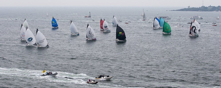 S'il est important de scorer dès le début de la course, les skippers le savent : rien n'est jamais joué. Et pour preuve le début de cette transat, qui ne ressemble pas à ce dernier classement. Dès que le canon a tonné à 13 heures hier, les Figaristes se sont engouffrés dans un flux de secteur Sud-Ouest à Ouest à peine installé à 5 noeuds, avec la possibilité alors d'envoyer le spinnaker tout de suite au vent, ou côté bouée de bout de ligne, c'est-à-dire à l'Est... Le duo Groupe Royer - Secours Populaire manoeuvre et réussi à gagner quelques mètres, pour atteindre en tête la première marque de parcours située devant la plage du Cap Coz. Guyot Environnement et Les Macarons French Pastries suivent toujours de près ! Alors que la flotte repique sur Concarneau, Adrien Hardy et Thomas Ruyant (Agir Recouvrement) enclenche l'empannage avant tout le monde et gagne deux places, tandis que Guyot Environnement a du mal à affaler son spinnaker. Direction alors la sortie du chenal avant, route sur les Glénan afin de virer la marque de parcours suivante, la Jaune des Glénan. Et c'est à cette bouée que le duo Marchand-Loison conforte son avance. Au classement de 16 heures le 22 avril, on retrouve en trio de tête : Groupe Royer - Secours Populaire, Bretagne CMB Performance et Saferail, suivi en 4e place par Le Macaron French Pastries et en 5e position Les Perles de Saint-Barth.