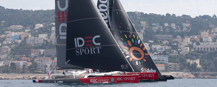 Sans enjeu sportif, le Prologue Région Sud-Provence-Alpes-Côte d’Azur, entre Marseille et Nice, constituait une belle occasion de « s’en mettre plein les mirettes dans un cadre inclassable et exceptionnel ! », comme le disait Thomas Coville quelques minutes avant de larguer les amarres. Cette première confrontation de Nice UltiMed était aussi une bonne mise en condition pour rôder les équipages, retrouver des automatismes et reprendre contact avec le terrain de jeu méditerranéen. IDEC SPORT a été le premier à larguer les amarres, suivi quelques minutes plus tard par Sodebo Ultim’ et Actual-Grand Large Emotion. Comme prévu, c’est dans un vent léger que les équipages se sont élancés et les conditions météo ont été conformes aux prévisions. « Toute la journée il a fallu composer avec un vent instable en force et en direction et la vitesse des bateaux a oscillé entre 5 et 15 nœuds », raconte Christophe Gaumont, directeur de course de Nice UltiMed. Profitant de la « légèreté » de sa monture et bien inspiré tactiquement, l’équipage d’Actual-Grand Large Emotion, mené par Yves Le Blévec, a rapidement pris les commandes de la flotte puis creusé l’écart sur Sodebo Ultim’ et IDEC SPORT. Les Ultimes de Thomas Coville et Francis Joyon ont souvent régaté au contact, parfois à quelques mètres à peine l’un de l’autre ! L’un des moments forts de la journée a été le passage des Ultimes entre la presqu’île de Giens et l’île de Porquerolles. C'est au petit matin que les trois géants sont arrivés dans le port de Nice.