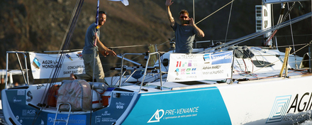 Pour Adrien Hardy et Thomas Ruyant de Agir Recouvrement, la victoire fut belle ! Après 18 jours, 11 heures, 48 minutes et 22 secondes de course, ils remportent la 14ème édition de la Transat AG2R LA MONDIALE, avec seulement une heure et neuf minutes d'avance sur Sébastien Simon et Morgan Lagravière (Bretagne CMB Performance). « On avait conscience que nous étions devant, mais il y avait encore pas mal de paramètres qu'on ne gérait pas : les sargasses, les alizés, les grains avec seulement neuf milles d'avance ! Mais on avait les crocs pour aller chercher cette victoire. Et n'oublions pas que Sébastien Simon et Morgan Lagravière étaient vraiment rapides mais pour nous, notre route était la bonne : on n'a pas lâché notre option… Nous avions déjà fait une transat ensemble en IMOCA et nous savions que nous nous entendions bien et que nous étions sur la même longueur d'onde. Nous n'avons pas lâché la barre plus de deux heures sur cette transat ! » a déclaré Thomas Ruyant à son arrivée à Saint-Barthélemy. Le podium sera complété quelques heures plus tard par le duo de Breizh Cola : Gildas Mahé et Nicolas Troussel, 14 minutes et 15 secondes avant Guyot Environnement (Pierre Leboucher et Christopher Pratt).
