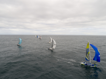 Lundi matin, la flotte retrouvera du vent grâce à un resserrement isobarique. Le flux de nord-est se renforcera en direction d’Ouessant pour atteindre 10 nœuds, dans une mer parfois contrariante avec des vagues de nord-ouest d’1,2m. Après Ouessant, le flux continuera de se renforcer entre 15 et 20 nœuds avec des vagues de nord-ouest à 1,5 m. Les vitesses de progression approcheront dès lors les 10 nœuds voir davantage. Mardi, la descente le long du golfe de Gascogne va s’opérer sous de bonnes vitesses grâce à un vent assez fort et irrégulier de secteur nord-nord-est autour de 20 nœuds puis 25 nœuds la nuit suivante.