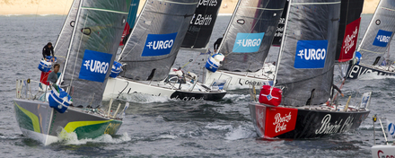 Le vent forcit graduellement. Les vitesses s’affolent et le golfe de Gascogne est avalé en 36 heures. Très rapide au portant, Sébastien Simon est le premier à se recaler sur la route directe dans la nuit. Il est suivi par un Eric Péron inspiré et tenace. Les empannages dans un vent monté à 30 noeuds font parfois des dégâts. A l’approche du fameux cap Finisterre, le vent mollit un peu. C’est finalement Sébastien Simon qui l’emporte dans la nuit espagnole en multipliant les empannages à la côte. Le skipper de Bretagne CMB Performance s’installe en tête au général avec 26 minutes d’avance.