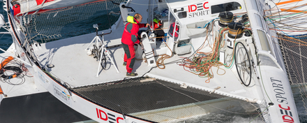 Son fidèle trimaran IDEC SPORT a profité dans cette optique d’un important chantier hivernal centré sur la fiabilisation. Le maxi-trimaran a été remis à l’eau vendredi 5 avril à Vannes puis a retrouvé cette semaine son port d’attache de la Trinité-sur-Mer.