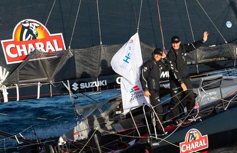 Par ce vent de nord-nord-est peu soutenu et surtout ce courant de face important (fort coefficient de marée de 101), ceux qui ont choisi de longer les falaises de craie ont eu le nez creux ! En approche d’Antifer, les petits coups tactiques ont fusé. Tous les équipages ont démarré un tricotage serré pour rejoindre la bouée Région Normandie face à Etretat, située pile dans l’axe du vent. Rapidement, les trois Mullti50 s’envolaient loin devant, mené par l’équipage Vauchel-Camus/Duthil sur leur bateau bleu. Derrière, du côté des Imoca, les foilers dernière génération semblaient à la peine, moins à l’aise dans ces conditions légères sur une mer formée, sauf Apivia qui a fait le choix dès le début de rester à la côte. Au classement de 16h, Kevin Escoffier et Nicolas Lunven (PRB) devancent la flotte des 29 bateaux suivis par Clarisse Kremer et Armel Le Cléac’h (Banque Populaire) et Nicolas Troussel et Jean Le Cam (Corum L’Epargne). En Class40, c’est très serré, voire collé-serré ! Kito de Pavant et Achille Nebout (Made in Midi) mettent quelques longueurs au duo Sam Goodchild/Fabien Delahaye (Leyton). Chappellier/Leboucher sur Aïna – Enfance & Avenir sont en embuscade, ils ont pris un départ canon !