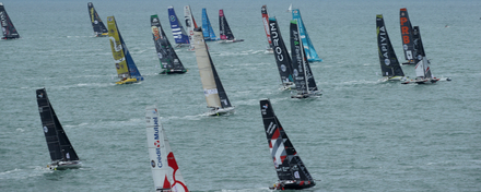 Sous un ciel nuancé de gris s’éclaircissant devant les étraves, sur une mer grise clapoteuse et par un vent léger forcissant sitôt la ligne de départ franchie, les 27 Class40, 3 Multi50 et 29 Imoca ont mis le cap vers Etretat pour doubler la marque obligatoire Région Normandie avant de glisser vers le Brésil. Au premier classement de 16h, Solidaires En Peloton ARSEP mène la danse des Multi50, PRB devance la meute des Imoca et chez les Class40, c’est Made in Midi qui confirme un bon choix tactique à la côte…